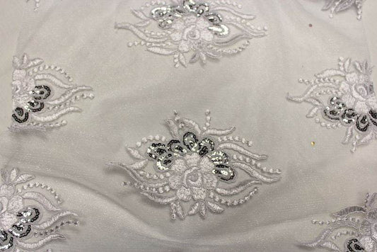 Blossom Glitter Sequin Embroidered Mesh Fabric. Lace Netting Material ideal for Sewing, Dresses, Gowns, Skirts, Veils